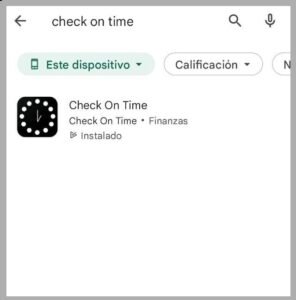 Para instalar la app móvil de Check On Time es necesario ir a la tienda de Play Store y buscar nuestra aplicación: